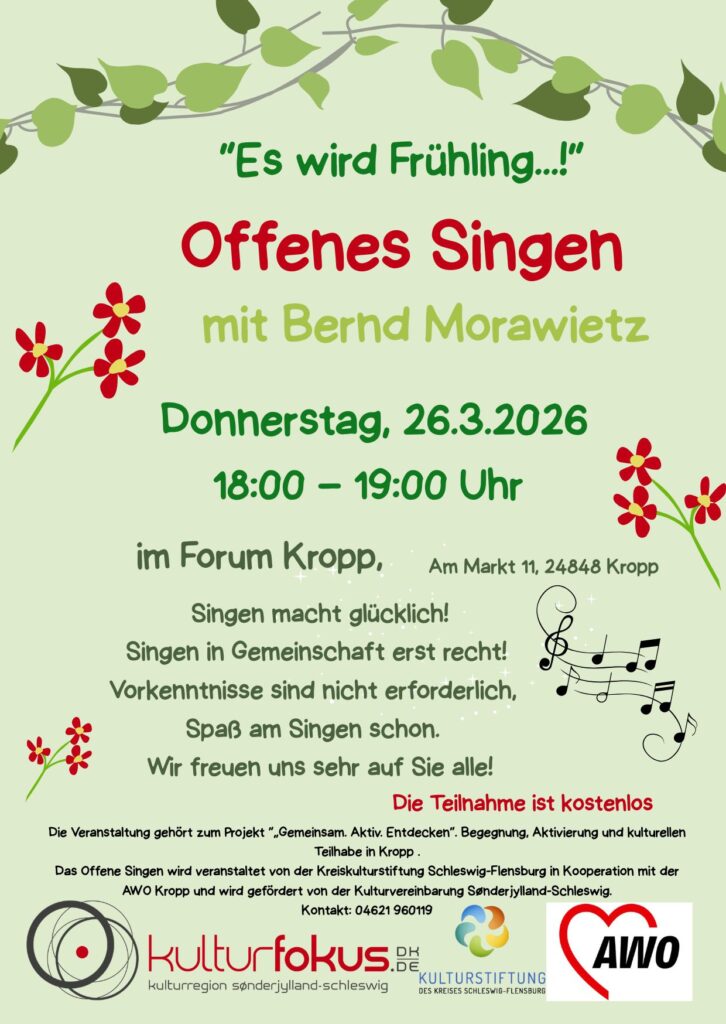 Die Kulturstiftung Schleswig-Flensburg startet 2025 mit einer Veranstaltungsreihe in Kropp für Seniorinnen und Senioren, in Kooperation mit der AWO Kropp.